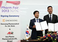 케어트로핀 펜 주사기 '2011~2012 월드 스타상' 수상 CT 조영제 '네오비스트' 이란, 우크라이나 등과 수출 계약 만성 폐쇄성 폐질환 치료제 '에클리라' 도입 복합소화효소제 '베아제' 중국 수출 계약 우루사 'K리그 2012' 공식 후원 계약 알츠하이머 치료제 '범부처 전주기 신약개발사업 과제' 선정 글로벌 기업 육성 프로젝트 '월드클래스300' 선정 인도네시아 의약품 생산 벤처회사 설립 계약 관절 건강기능식품 '무브(MOVE)' 출시 발기부전치료제 '누리그라' 출시 단백분해효소 억제제 '호이스타' 발매 '혁신형 제약기업' 선정 '2012 으뜸기술상' 기술부문 수상 돌발성 암통증 치료제 '인스타닐' 도입 2세대 습윤드레싱 '이지덤플러스' 출시 당뇨병성 족부궤양 치료제 '이지에프' 러시아 등 11개국 수출 CT조영제‘네오비스트’ 동유럽3국에 수출 계약 간질치료용 희귀의약품‘대웅 프리미돈’ 재출시 ‘이지에프’, 이집트 이지텍(EGY-TEC)사와 수출 계약 ‘우루사’, 인도 루핀(LUPIN)사와 호주, 뉴질랜드에 완제의약품 수출 계약 아시아 최초 만성골수성백혈병치료제 ‘슈펙트’ 발매 |